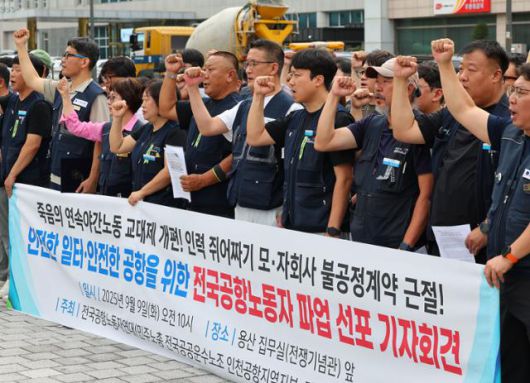 민주노총 공공운수노조 인천공항지역지부와 전국공항노조로 구성된 전국공항노동자연대는 19일 인천공항 제2여객터미널 앞에서 '4조 2교대 개편', '노동시간 단축', '인력 충원' 등을 요구하는 총파업대회를 연다. 이날 총파업에는 전국 15개 공항과 항공기술훈련원, 한국공항공사 항로시설본부 등의 노조 조합원이 참여한다. 공항노동자연대 측은 "수년간 적체된 문제를 올해 반드시 매듭짓는다는 각오로 총파업에 임할 것"이라고 말했다.