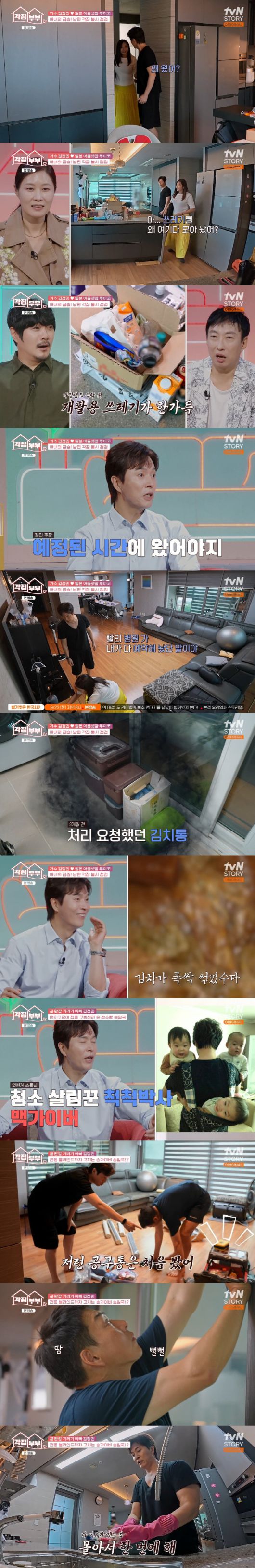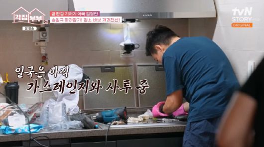 18일 방송된 tvN STORY '각집부부'에서는 아내 루미코의 급습에 당황하는 김정민의 모습이 그려졌다.