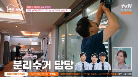 업자를 방불케 하는 공구함을 들고 온 송일국은 지난 2년간 각집 생활로 쌓은 필살 노하우로 전동 블라인드를 교체하며 '송가이버'의 진면모를 발휘했다.