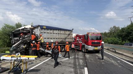 호원나들목 인근에서 24t 화물차가 승용차를 들이받는 사고의 여파 때문입니다.