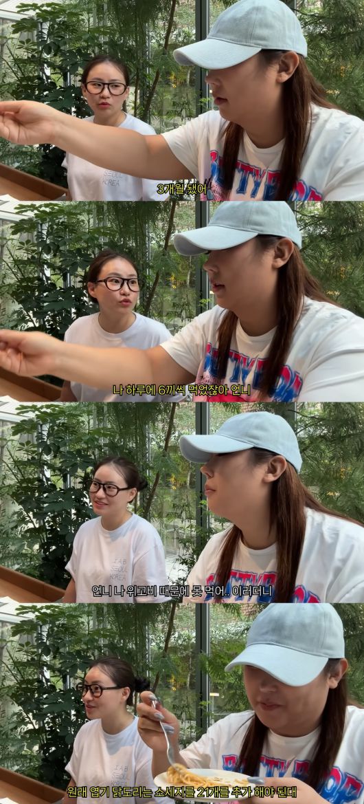 이어 풍자는 "얼마 전에 나랑 술 마셨을 때 내가 '김밥 먹을래?' 물어봤는데 '언니 나 위고비 때문이 못 먹어'라고 하더니 닭볶음탕을 시켜 하나를 다 먹었다. 라면도 먹었고"고 폭로했다.