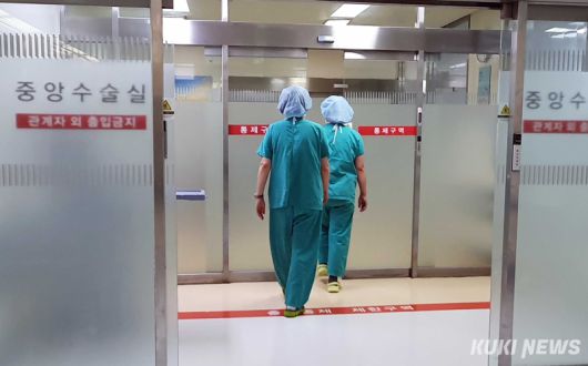 한 병원 의료진이 수술실로 들어가고 있다. |