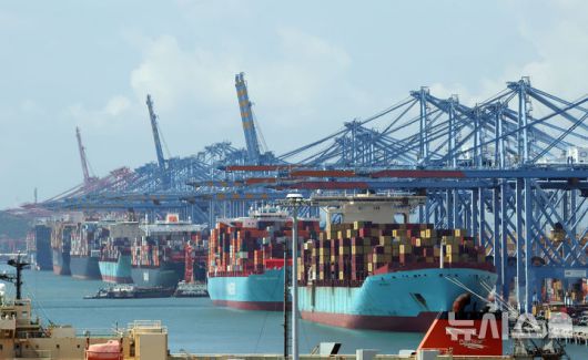 [부산=뉴시스] 하경민 기자 = 14일 부산 강서구 부산항신항 부두에서 수출입 컨테이너 선적 및 하역작업이 진행되고 있다. 2025.09.14. yulnetphoto@newsis.com |