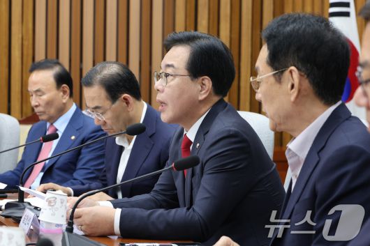 송언석 국민의힘 원내대표가 17일 오전 서울 여의도 국회에서 열린 '정부조직법의 문제점 : 중수청(중대범죄수사청) 중심으로' 토론회에서 축사하고 있다. 2025.9.17/뉴스1 ⓒ News1 신웅수 기자 |