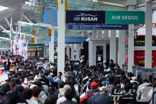 (인천공항=뉴스1) 박정호 기자 = 엄길용 민주노총 전국공공운수노조 위원장이 19일 오전 인천국제공항 2터미널에서 열린 안전한 일터·안전한 공항을 위한 전국공항노동자 총파업 대회에서 격려사를 하고 있다. 전국공항노동자연대는 연속야간노동 강제하는 교대제 개편 및 4조2교대 연내 시행, 노동시간 단축 및 인력충원, 모·자회사 불공정 계약 근절, 낙찰율 임의 적용 폐지와 인건비 환수 결원정산 폐지 등을 요구하며 이날 하루 총파업을 진행한다. 2025.9.19/뉴스1