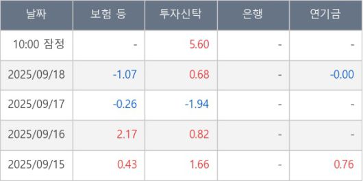 [표] 주요 기관별 순매매량 (단위 만주)