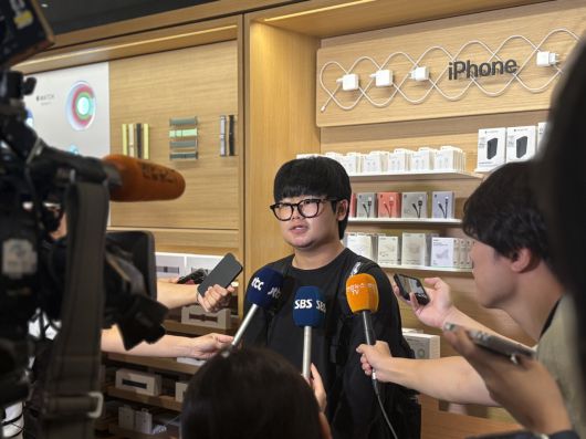 이날 아이폰17 1호 구매자가 된 주인공은 대학생 김지민 씨였다. 그는 문이 열리기 하루 전날인 18일 저녁 9시 30분부터 줄을 섰다. 오랜 대기에도 지친 기색은 없었고 신제품을 손에 쥐게 된다는 기대감으로 해맑은 표정을 짓고 있었다.