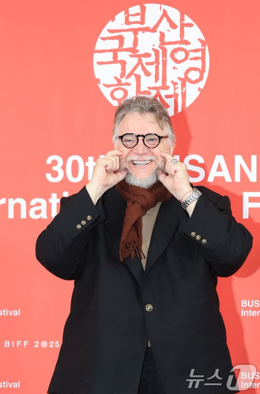 기예르모 델토로 감독이 19일 오전 부산 해운대구 영화의전당 비프힐에서 열린 제30회 부산국제영화제(BIFF) 갈라 프레젠테이션 초청작 '프랑켄슈타인' 기자회견에 참석해 포즈를 취하고 있다. 2025.9.19/뉴스1 ⓒ News1 권현진 기자 |
