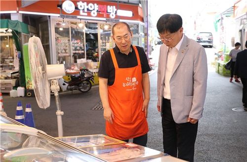 안형준 통계청장은 지난 15일 대전 신도시장을 찾아 사과·배 등 추석 성수품 가격 동향을 점검하고 조사 대상 상점을 찾아 감사 인사를 전했다.