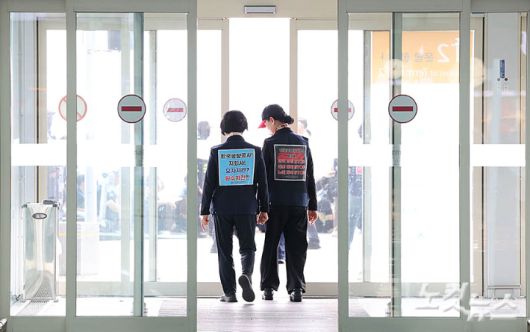 전국공항노동자연대는 3조 2교대 근무 체계의 4조 2교대 전환과 자회사 직원에 대한 불이익 개선을 요구하고 있다.
