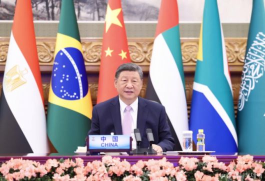 [베이징=신화/뉴시스] 시진핑 중국 국가주석이 8일(현지 시간) 중국 베이징에서 화상으로 브릭스(BRICS) 정상회의에 참석해 ‘연대와 협력을 통한 전진’이라는 내용의 연설을 하고 있다. '브릭스'는 중국과 브라질, 러시아, 인도, 남아프리카공화국 등으로 이뤄진 다자 협력체다. 2025.09.09. /사진=민경찬 |