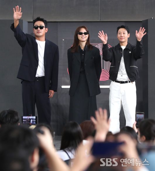 [E포토] 하정우-공효진-김동욱, 부산에 내려온 '윗집 사람들'