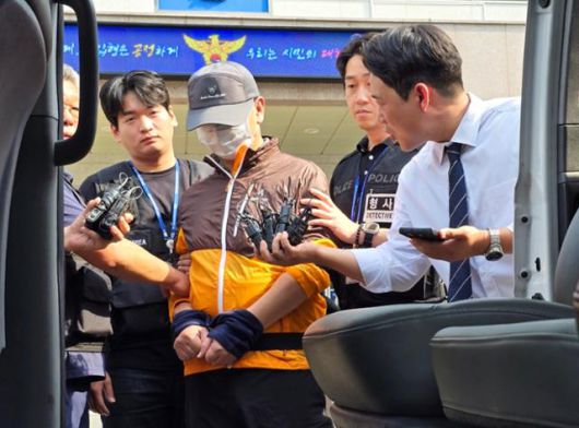 사제 총기로 친아들을 살해한 혐의 등으로 구속된 60대 남성이 7월 30일 인천 남동구 논현경찰서에서 검찰로 압송되고 있다. 뉴시스 |
