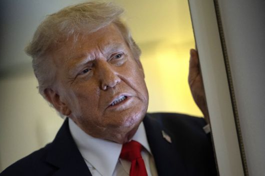 18일(현지시간) 도널드 트럼프 미국 대통령이 영국에서 미국으로 돌아오는 전용기 ‘에어포스원’ 기내에서 기자들에게 발언하고 있다.(사진=AFP)