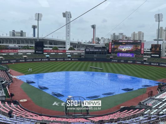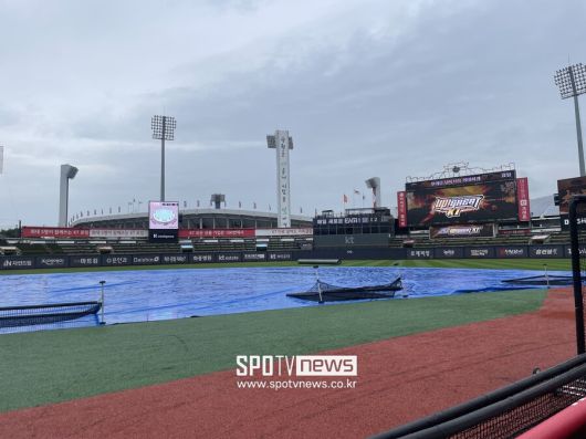이날 오전부터 하늘이 흐리더니 낮부터 비가 쏟아지기 시작했다. 경기 개시를 2시간여 남겨둔 시점에도 비는 그치지 않았다. 폭우까진 아니지만 적지 않은 비가 내렸다. 또한 기상청의 일기 예보에 따르면 이튿날인 20일 이른 아침까지 우천이 예고돼 있었다. KT위즈파크 내야엔 대형 방수포가 깔렸다. 비가 잦아들길 기다렸지만 취소가 결정됐다.