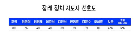 차기 정치 지도자 누구?...'없음' '모름' '응답 거절' 59%