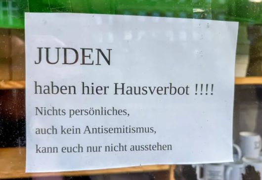 독일의 한 헌책방에서 ‘유대인 출입 금지’ 안내문을 내걸었다가 뭇매를 맞고 있다.