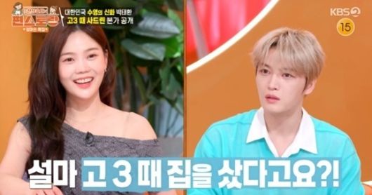 출연진들은 "고3 때 집을 사다니 이게 영앤리치지 뭐냐?" "잠실이래" "19세에 세계수영 1등이었으니까"라며 감탄했다.