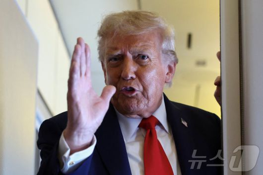 도널드 트럼프 미국 대통령이 18일(현지시간) 영국 국빈 방문을 마치고 귀국하는 전용기 에어포스원 안에서 기자들의 질의에 답하고 있다. 2015.09.18 ⓒ 로이터=뉴스1 ⓒ News1 최종일 선임기자 |