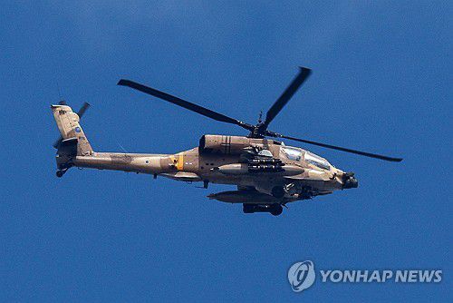 가자지구 상공에 진입한 이스라엘군 아파치 헬기 |