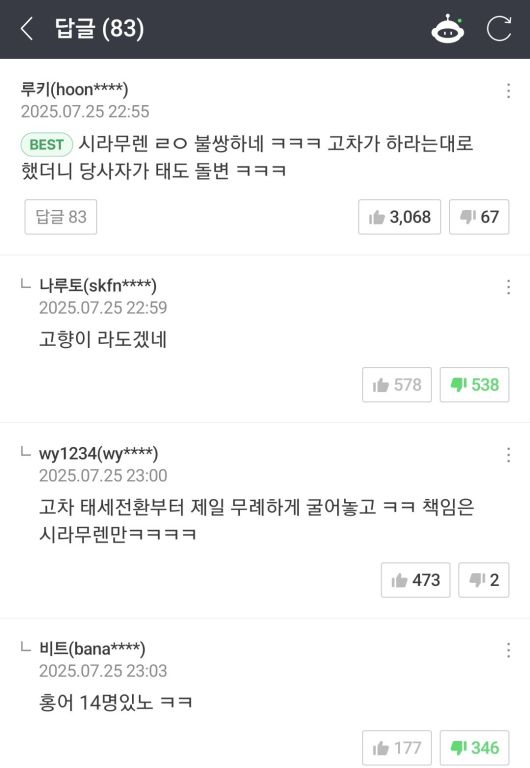 네이버 댓글. 네이버 캡처 |