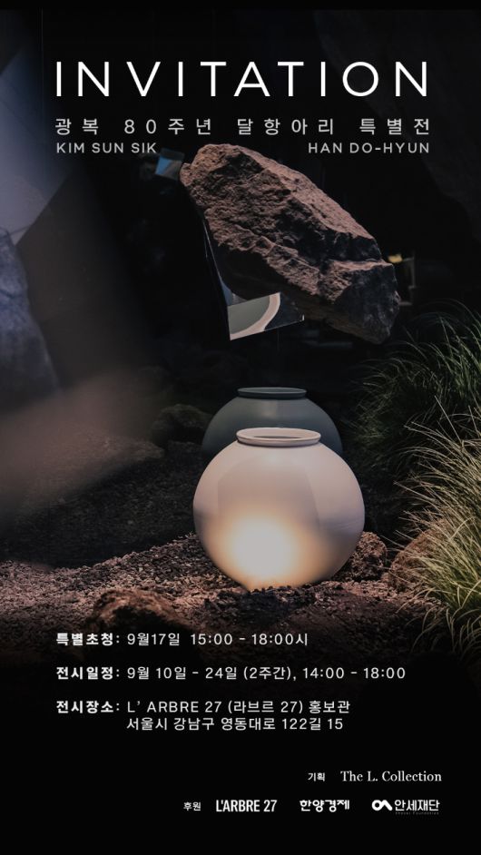 경상북도 무형문화재 김선식 사기장과 경기도 이천에서 활동하는 한도현 명장의 '조선백자 달항아리 특별전'이 서울 강남구 삼성동 라브르27(L'ARBRE 27) 홍보관에서 24일까지 열린다.
