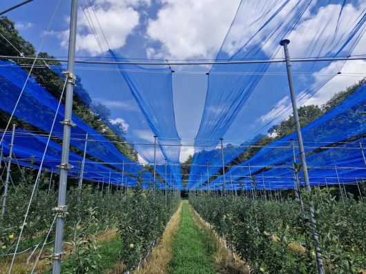 이번에 선보인 기술은 '비용 절감형 노지 복합제어 시스템'으로, 예인식 자동 차광망과 관수 장치를 결합한 스마트 시설이다. 과수원이 우박, 일소, 가뭄 등 외부 환경 피해로부터 작물을 보호할 수 있도록 설계됐으며, 농가의 유지·관리 부담을 획기적으로 줄인 것이 특징이다.