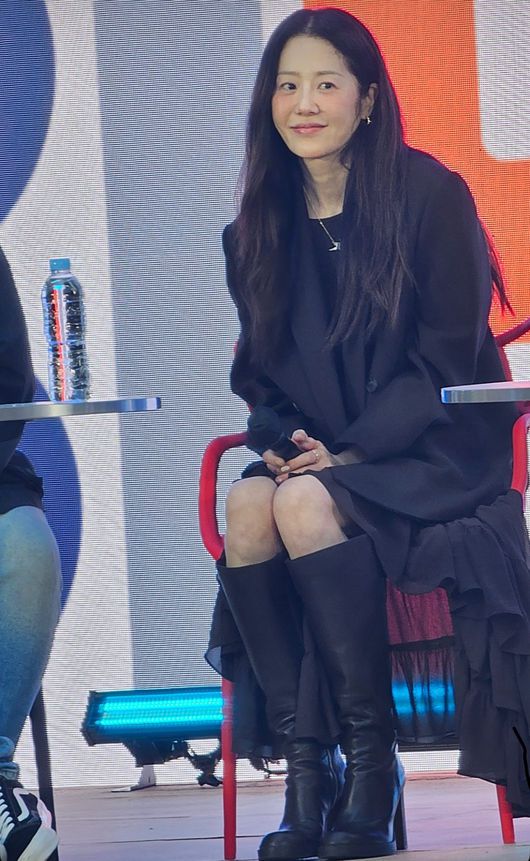 이날 고현정은 변영주 감독과 함께 드라마 '사마귀'에서 아들 역할의 장동윤과 함께 무대에 올랐다. 고현정은 장동윤이 말할 때 기특하다는 눈빛을 숨기지 못했으나, 드라마 화면에서 보여지던 늙고 지친 느낌의 '장이신'이 아닌 배우 고현정의 미모로 그 곁에서 바라봤을 때는 마치 설레는 케미가 돋보이는 듯했다.