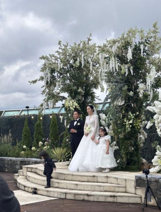 공개된 사진에는 턱시도를 차려입은 김병만과 웨딩드레스를 입은 현은재 씨의 모습이 담겼다. 특히 야외 예식을 올리는 두 사람의 모습이 인상적이다.