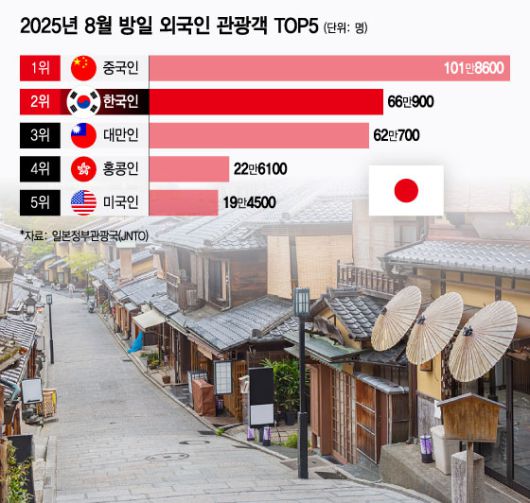2025년 8월, 일본을 찾은 외국인 방문객 중 한국인이 2위로 집계됐다.