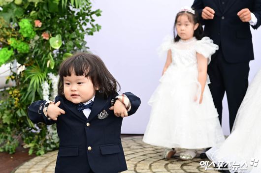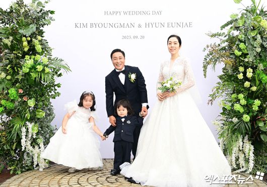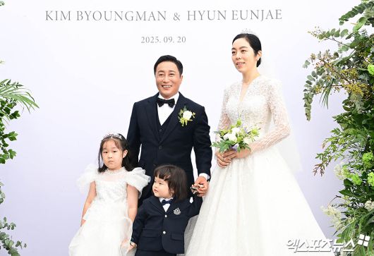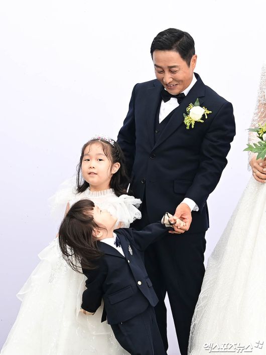 이날 김병만은 현 씨와의 사이에서 가진 자녀 둘과 함께 자리해 시선을 끌었다. 김병만을 똑닮은 딸과 아들은 저마다 드레스와 턱시도를 착용한 채 달려와 아빠의 손을 잡으며 단란한 가족의 모습을 연출했다.