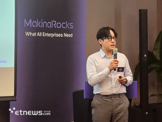 윤성호 마키나락스 대표가 지난해 10월24일 서울 서초구 JW메리어트에서 열린 기자간담회에서 발표하고 있다. [사진=현대인 기자] |