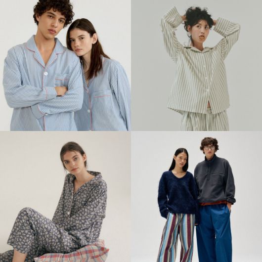 블루마운틴 파자마 룩북(왼쪽 상단부터 시계방향), 도미토리 파자마 시리즈, 핀카 원마일 팬츠, 헬싱키 파자마 룩북. / 블루마운틴, 도미토리, 핀마, 헬싱키 |
