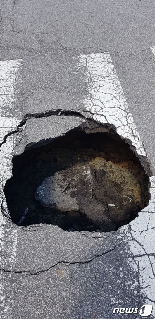 포트홀. 기사 내용과는 무관. (독자제공) 2023.8.11/뉴스1 ⓒ News1 이수민 기자 |