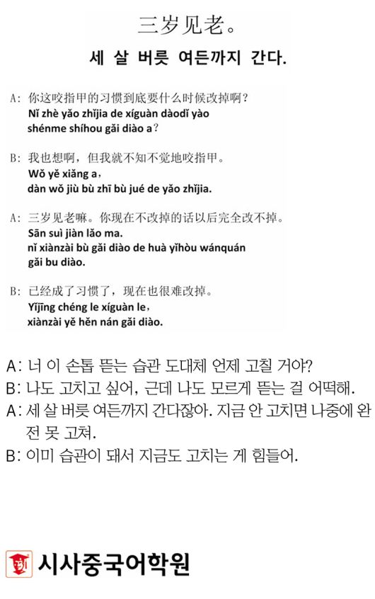 [시사중국어학원의 리얼 중국어 회화] 세 살 버릇 여든까지 간다.