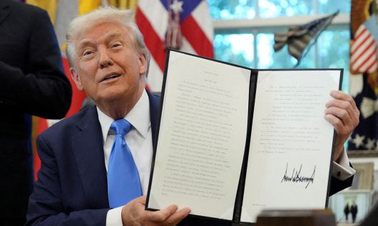 트럼프 대통령은 19일(현지시간) 백악관 집무실에서 H-1B 비자 수수료를 기존 1000달러(약 140만원)의 100배인 10만달러로 올리는 내용의 포고문에 서명했다. 새 수수료 규정은 9월21일 0시1분부터 발효한다.