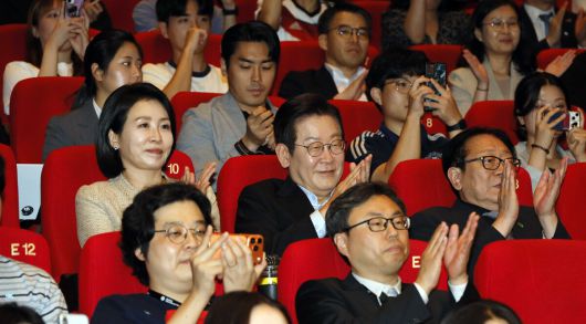 부산영화제 간 李 “영화산업 성장 지원” 이재명 대통령 내외가 20일 부산 영화의 전당에서 부산국제영화제 공식상영작 관람에 앞서 관객들과 박수를 치고 있다. 이 대통령은 영화 ‘극장의 시간들’을 본 뒤 “정부가 영화산업을 근본에서부터 튼튼하게 성장하도록 충분히 지원하고 관심을 갖겠다”고 말했다.대통령실사진기자단