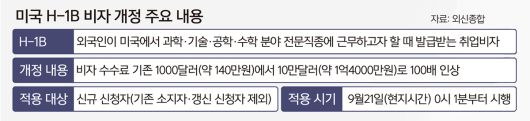 도널드 트럼프 미국 행정부가 ‘전문직 비자’로 불리는 H-1B 비자 수수료를 1인당 10만달러(약 1억4000만원)로 100배 인상하자, 외국인 근로자 비중이 높은 정보기술(IT) 기업에 비상이 걸렸다.