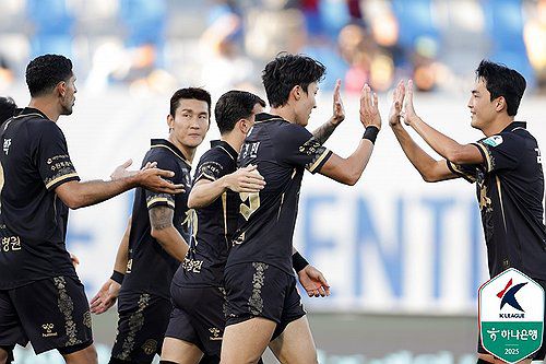 울산은 21일 울산문수축구경기장에서 열린 FC안양과의 하나은행 K리그1 2025 30라운드 홈 경기에서 0-0으로 비겼다. 강원의 자책골로 앞서가자 기쁨을 나누는 수원FC 선수들. 2025.9.21 [한국프로축구연맹 제공. 재판매 및 DB 금지]