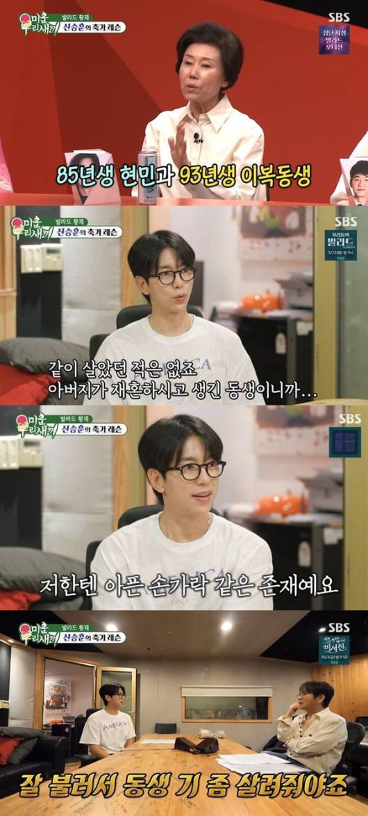 지난 21일 방송된 SBS 예능 '미운 우리 새끼'(이하 '미우새')에서는 윤현민이 신승훈을 찾아가 이복동생의 결혼식 축가 레슨을 받는 모습이 담겼다.