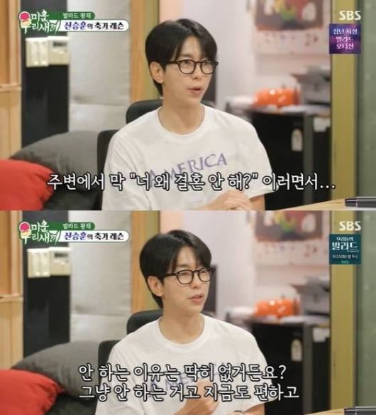 윤현민은 이야기 중 결혼에 대한 생각도 털어놨다. 그는 "내가 결혼 안 하는 이유는 그냥 안 하는 거다. 지금이 너무 편하다"고 말했다. 이어 윤현민은 "결혼을 꼭 해야 한다는 압박감보다는, 지금 내 생활이 만족스럽다보니 급하지 않다"고 덧붙였다.