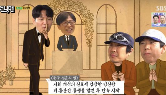 [OSEN=김수형 기자] ‘런닝맨’에서 간소화할 것이라 했던 김종국 결혼식, 사실은 초화화 결혼식이었단 사실이 밝혀졌다.