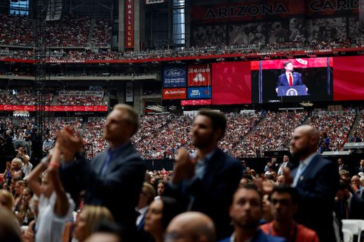 지난 10일 총격범에 의해 살해된 찰리 커크의 추모 행사가 열린 미국 애리조나주 글렌데일의 스테이트팜 스타다움은 트럼프 미국 대통령을 포함한 행정부 주요 인사들이 총출동해 흡사 전당대회를 방불케했다.