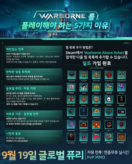 Warborne Above Ashes는 테스트 단계부터 전 세계 500여 개 길드가 참여해 치열한 경쟁을 벌였으며, 아시아·북미·남미를 아우르는 글로벌 길드 전쟁으로 MMO 팬들의 기대감을 한층 끌어올렸다. 이미 ‘전투의 본질을 구현한 MMO’라는 평가를 얻으며 정식 출시 전부터 다크호스로 부상한 만큼, PvP 마니아뿐 아니라 새로운 MMO 경험을 갈망하는 게이머라면 반드시 주목해야 할 타이틀이다.