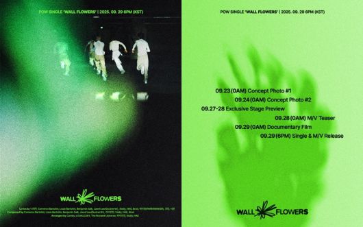 해당 이미지에는 새 타이틀곡 제목 ‘Wall Flowers’와 함께 다양한 콘텐츠 플랜이 담겨 있어 뜨거운 관심을 모았다. 특히 이번 타이틀곡 ‘Wall Flowers’의 작사가 라인업에 나태주 시인의 이름이 올라가면서, 음악 팬들 사이에서 곡에 대한 궁금증이 커지고 있다. 짙은 감성과 시적인 표현이 더해져 파우(POW)만의 서정적인 세계관을 한층 풍성하게 만들 것으로 기대된다.