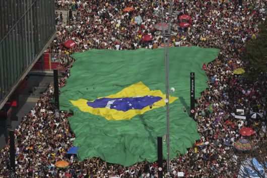 1960년대 군사독재 정권 시절 검열에 저항했던 음악계의 전설 카에타누 벨로주, 치코 부아르케, 지우베르투 지우 등이 리우데자네이루 코파카바나 인근에서 다시 모여 시위를 벌였다.