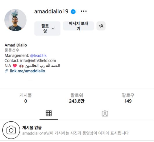 아마드 디알로가 인스타그램 게시물을 모두 삭제했다.