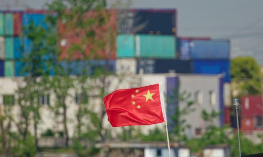 지난 4월18일 중국 상하이 컨테이너 터미널 앞에 중국 국기가 날리고 있다. EPA 연합뉴스 |