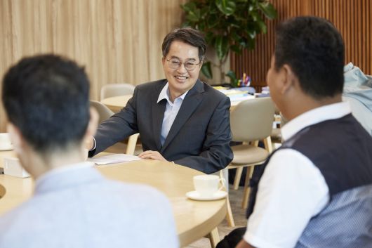 김동연 경기지사는 중국 출장 직전인 22일 집무실에서 극저신용대출 이용자 3명을 초청해 간담회를 가졌다.