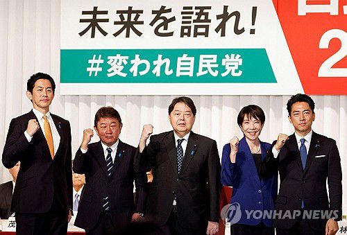 현지 언론에 따르면 이날 오전 고시된 자민당 총재 선거에는 다카이치 사나에(64) 전 경제안보담당상, 고이즈미 신지로(44) 농림수산상, 하야시 요시마사(64) 관방장관, 고바야시 다카유키(50) 전 경제안보담당상, 모테기 도시미쓰(69) 전 자민당 간사장 등이 입후보했다.
